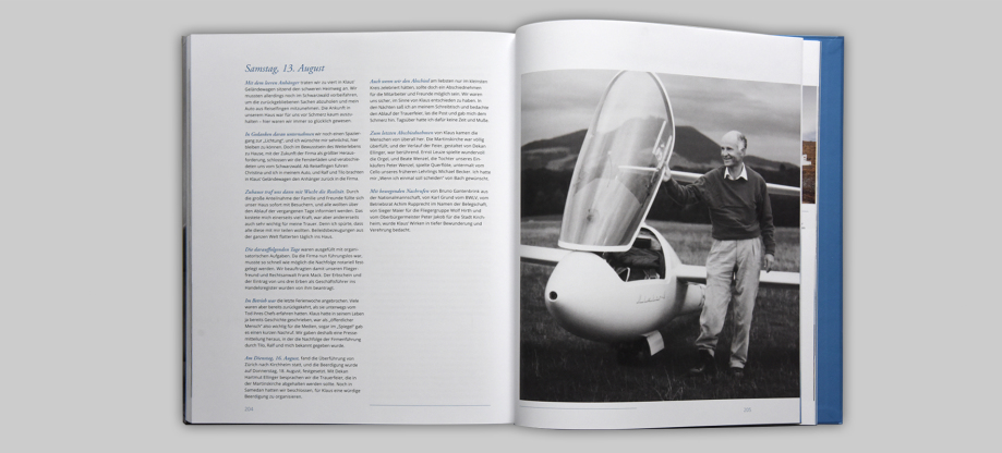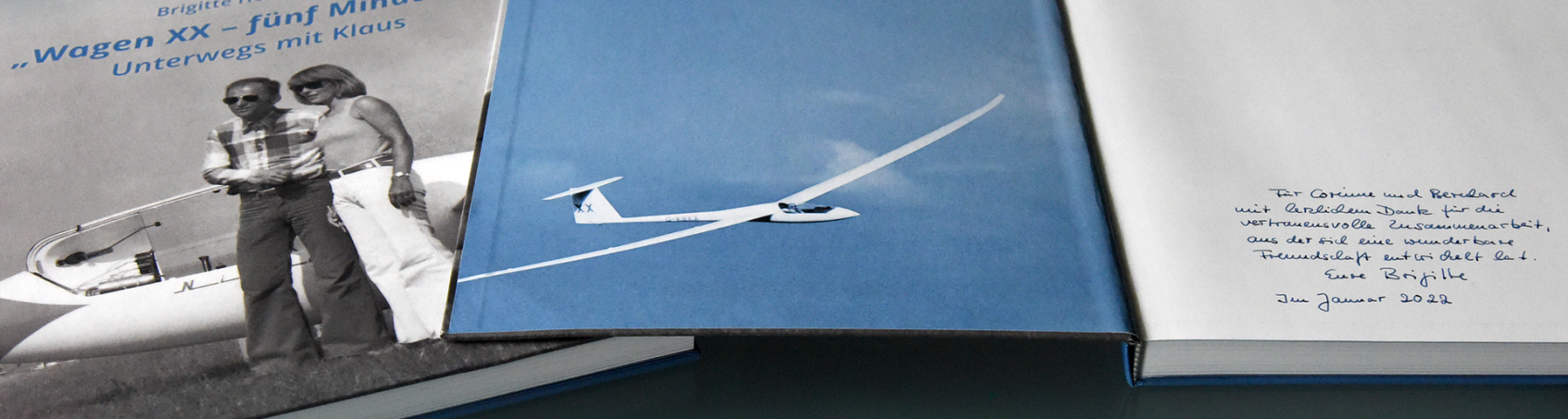 In Fliegerkreisen – und sicher darüber hinaus – wird dieses Buch, das Mitte Januar 2022 auf den Markt kommt, für Gesprächsstoff sorgen: „Wagen XX – fünf Minuten“. Darin schildert Brigitte Holighaus, Seniorchefin von Schempp-Hirth, ihr Leben an der Seite ihres Mannes Klaus. Dieser war 1994 im Alter von 54 Jahren auf tragische Weise am Rheinwaldhorn in der Schweiz ums Leben gekommen. Er hatte berühmte Segelflugzeuge konstruiert wie den „Cirrus“ oder„Nimbus“, war erfolgreich als Unternehmer und Sportler. Das Buch enthält viele bislang nicht veröffentlichte Fotos aus Brigitte Holighaus‘ Privatarchiv und eine Reihe von Beiträgen, die Klaus Holighaus noch zu Lebzeiten verfasst hatte.